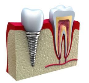 A titanium “post” is placed surgically into the jawbone and as you heal the post (implant) will